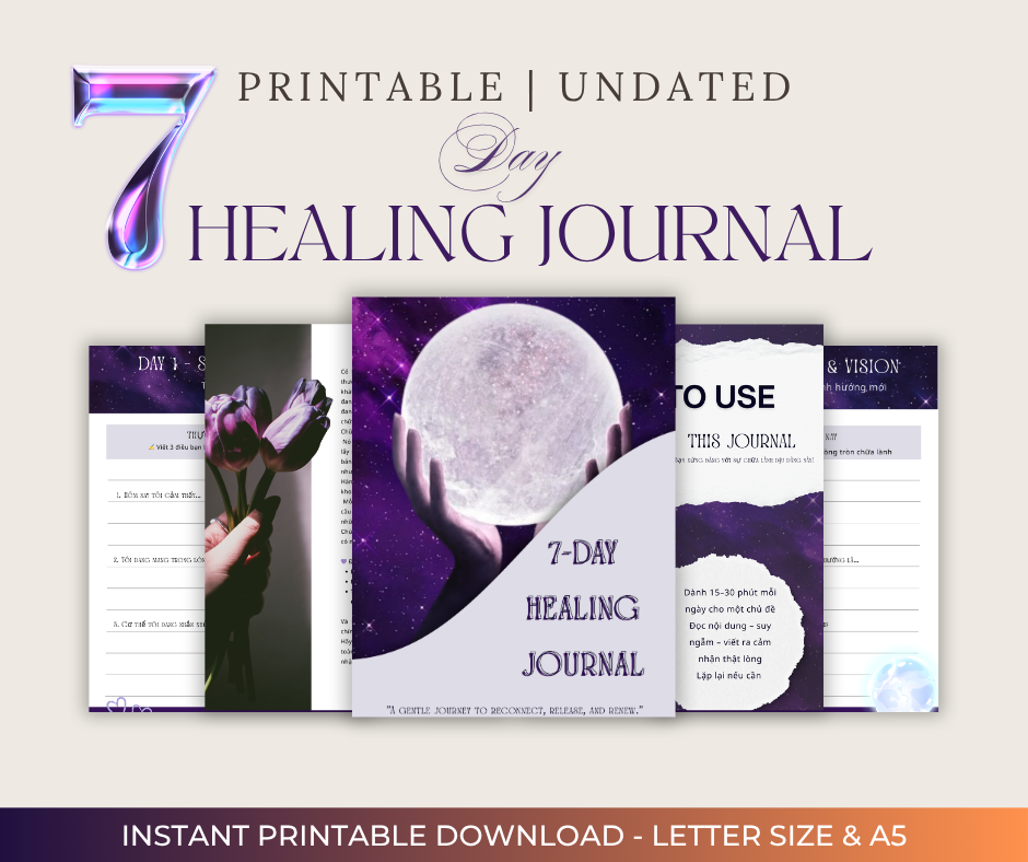 7-Day Healing Journal Printable – Self-care Digital PDF + Canva Template